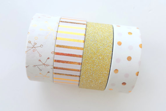 HEMA washi selotejp ukrašen je zlatnom folijom na bijeloj pozadini.