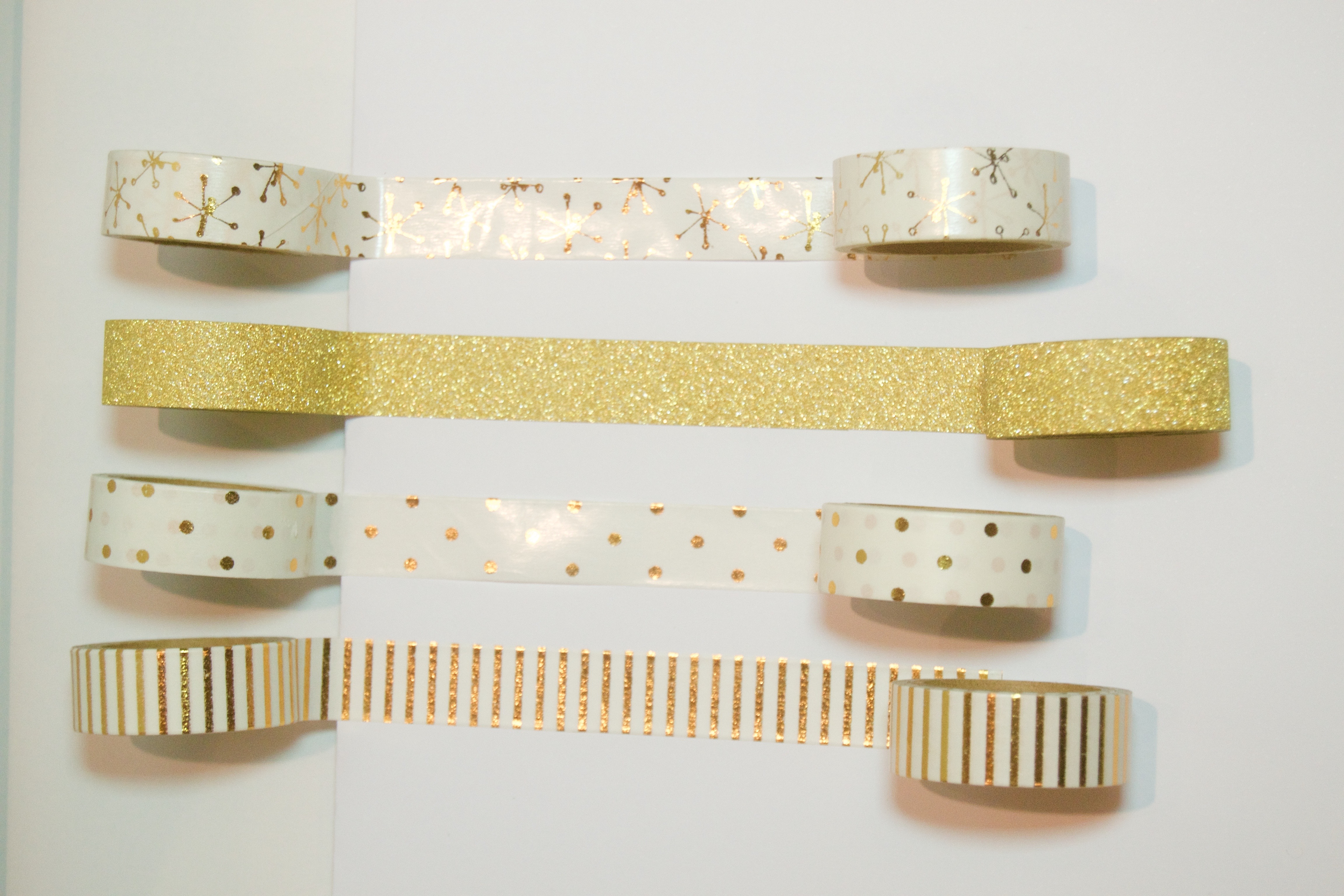 HEMA washi selotejp ukrašen je zlatnom folijom na bijeloj pozadini.
