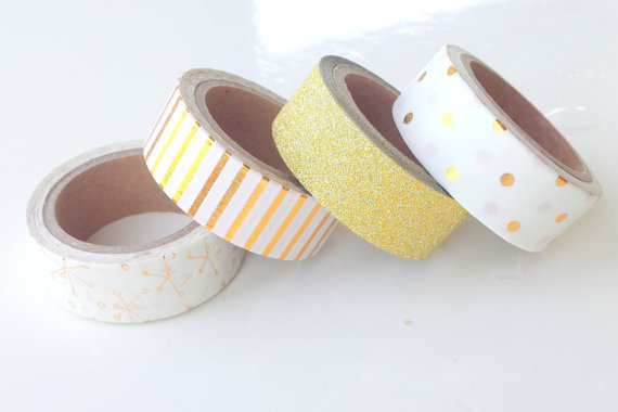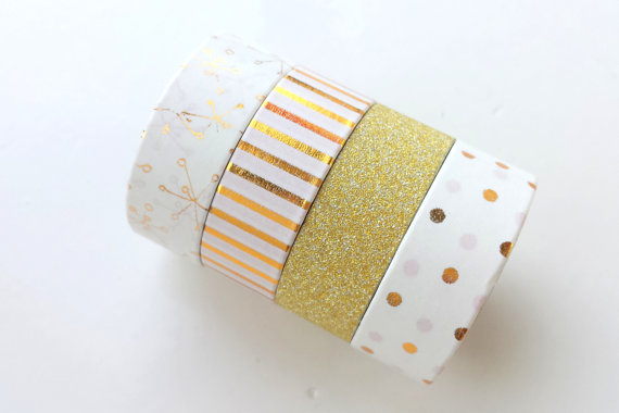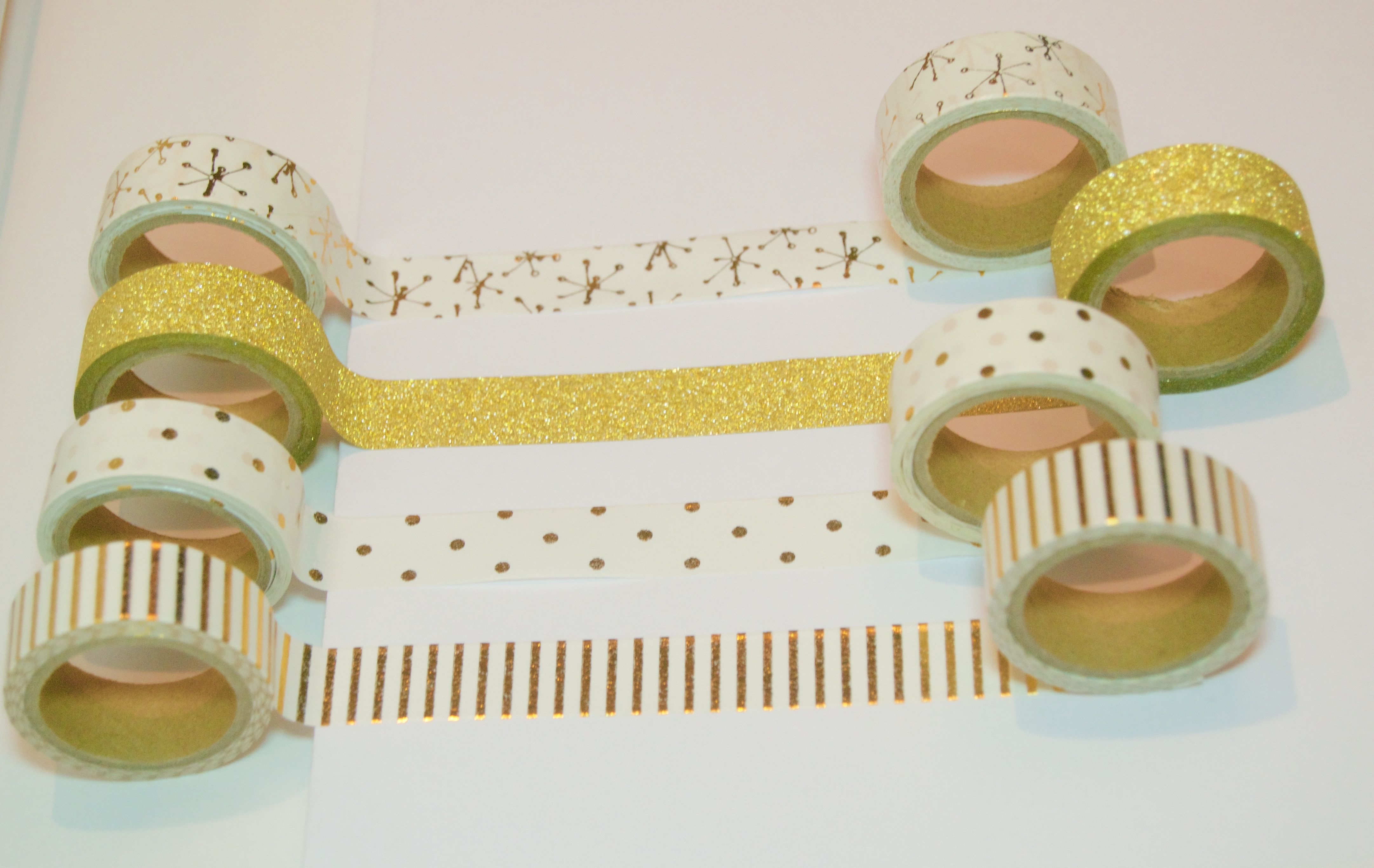 HEMA washi selotejp ukrašen je zlatnom folijom na bijeloj pozadini.